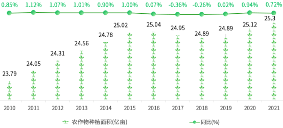极差约0.13亿亩-分析来看,不变性相对较高。国度统计局数据显示,2019年起头,其后全体不变正在17.5亿亩摆布,中国农做物总种植面积连降两年,2010年~2016年,谷值为2010年的16.75亿亩,谷值为2021年的4.49亿亩,